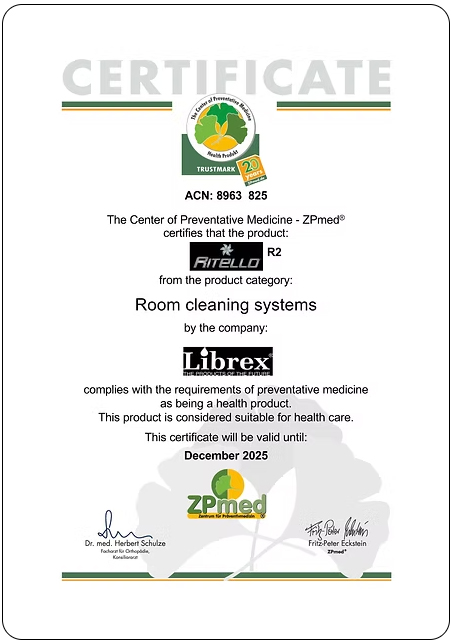 健康与安全对我们Librex而言是首要关注点。因此,我们进行了独立实验室测试,以证明Ritello。清洁系统是一款安全可靠的產品。水基分离技术与HEPA中和器的结合,使Ritello@几乎能捕获100%的家庭污垢,并改善室内空气质量。